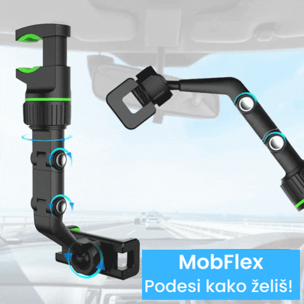 MobFlex je fleksibilni auto držač za sve modele mobilnih telefona koji čini tvoju vožnju bezbjednijom! Rotira se za 360 stepeni i podešava u različite položaje što ti omogućava da bezbjedno koristiš telefon dok voziš, da gledaš omiljenu seriju u krevetu ili snimaš video kako isprobavaš novi recept u kuhinji, a sve to bez držanja telefona.
